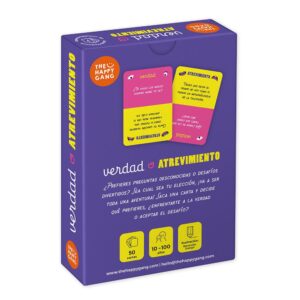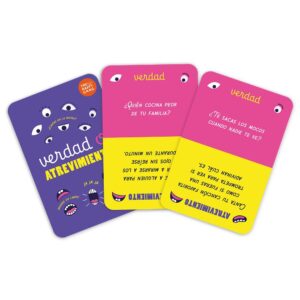 ¡Elijas lo que elijas, la aventura está garantizada! Verdad o Atrevimiento es un juego de cartas clásico, pero con 50 preguntas y retos diseñados para que pases un buen rato con tus amigos. Saca una carta, decide si quieres enfrentar una pregunta "verdad" y responder con honestidad, o un atrevimiento, ¡y prepárate para la diversión!